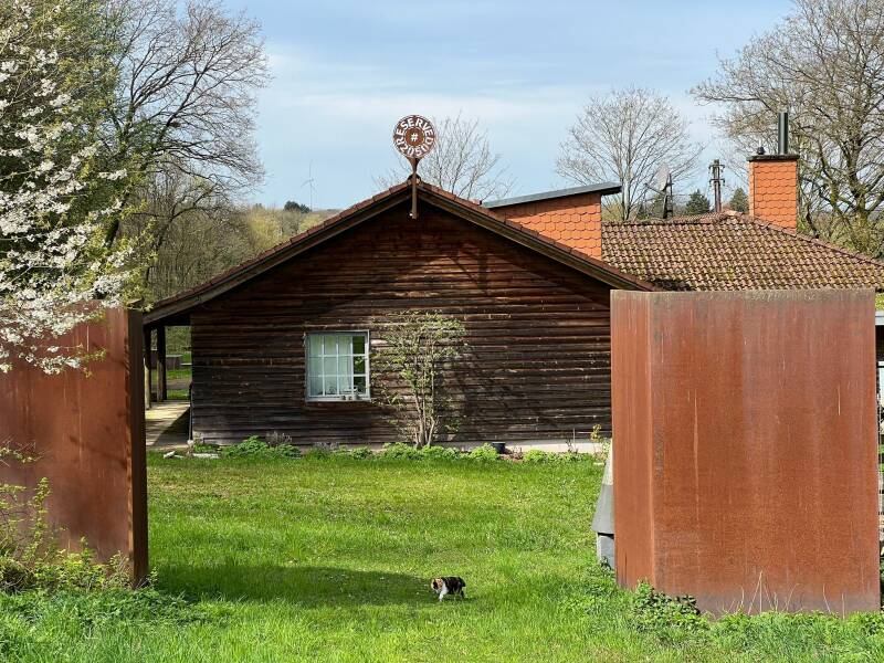 platform, desk with G U T-Lehrstuhl, stamp holder, deed, and in the background photo of planetair-Reserved-object No 9B